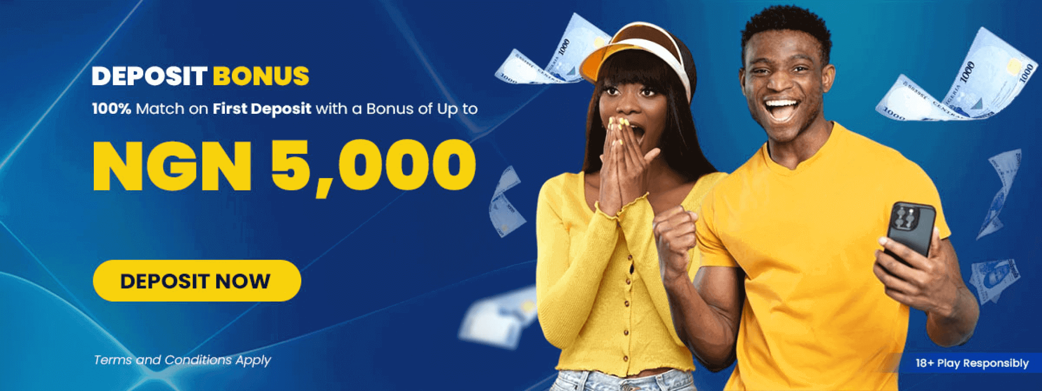 Get a 100% Deposit Match on Your First Deposit with a Bonus of Up to NGN 5,000.00